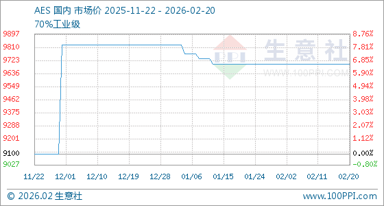 2月20日,生意社AES基准价为9700.00元/吨,与本月初持平。