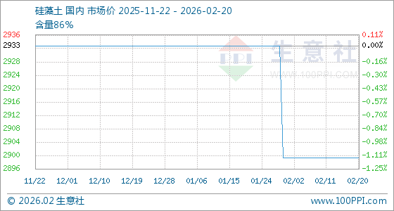 2月20日,生意社硅藻土基准价为2900.00元/吨,与本月初持平。