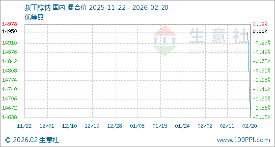2月20日,生意社叔丁醇钠基准价为14950.00元/吨,与本月初持平。