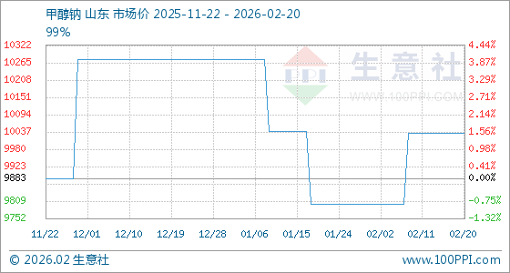 2月20日,生意社甲醇钠基准价为10033.33元/吨,与本月初(9800.00元/吨)相比,上涨了2.38%。