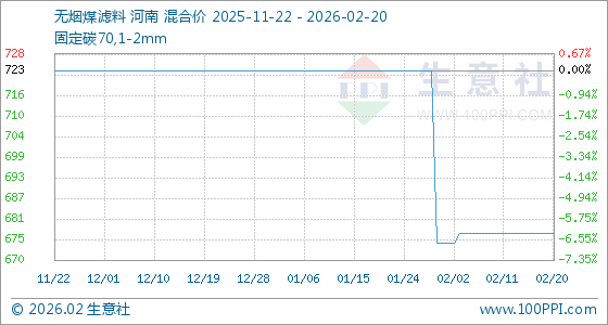 2月20日,生意社无烟煤滤料基准价为677.50元/吨,与本月初(675.00元/吨)相比,上涨了0.37%。