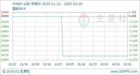 2月20日,生意社EHMA基准价为18700.00元/吨,与本月初持平。