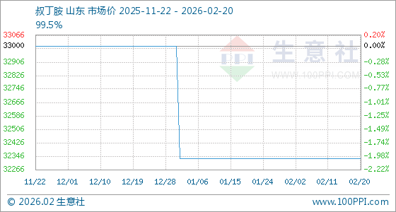 2月20日,生意社叔丁胺基准价为32333.33元/吨,与本月初持平。