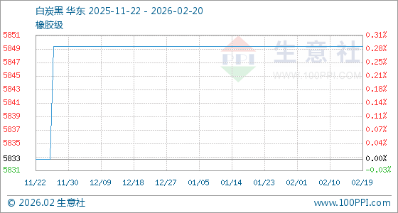 2月20日,生意社白炭黑基准价为5850.00元/吨,与本月初持平。