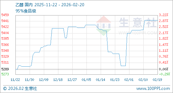 2月20日,生意社乙醇基准价为5444.45元/吨,与本月初(5403.33元/吨)相比,上涨了0.76%。
