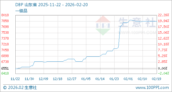 2月20日,生意社DBP基准价为7851.67元/吨,与本月初(7818.33元/吨)相比,上涨了0.43%。