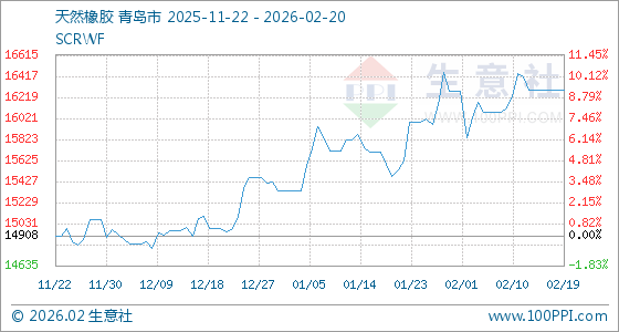 2月20日,生意社天然橡胶基准价为16283.33元/吨,与本月初(16275.00元/吨)相比,上涨了0.05%。