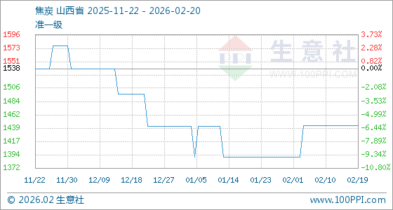 2月20日,生意社焦炭基准价为1443.75元/吨,与本月初(1391.25元/吨)相比,上涨了3.77%。
