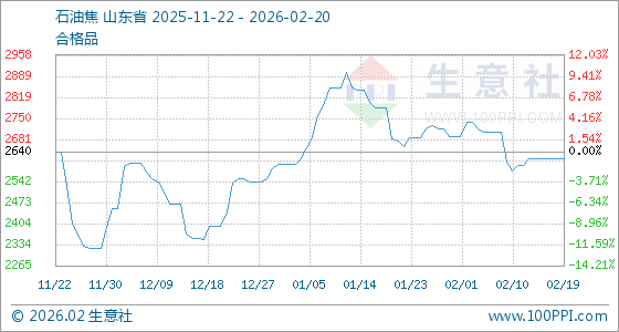 2月20日,生意社石油焦基准价为2618.25元/吨,与本月初(2691.75元/吨)相比,下降了2.73%。