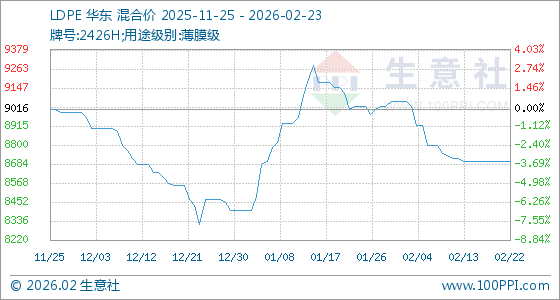 2月23日,生意社LDPE基准价为8700.00元/吨,与本月初(9066.67元/吨)相比,下降了4.04%。