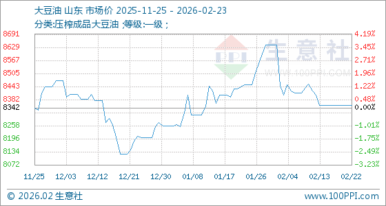 2月23日,生意社大豆油基准价为8354.00元/吨,与本月初(8640.00元/吨)相比,下降了3.31%。