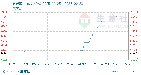 2月23日,生意社环己酮基准价为7037.50元/吨,与本月初(6900.00元/吨)相比,上涨了1.99%。