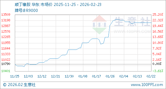 2月23日,生意社顺丁橡胶基准价为13070.00元/吨,与本月初(13250.00元/吨)相比,下降了1.36%。