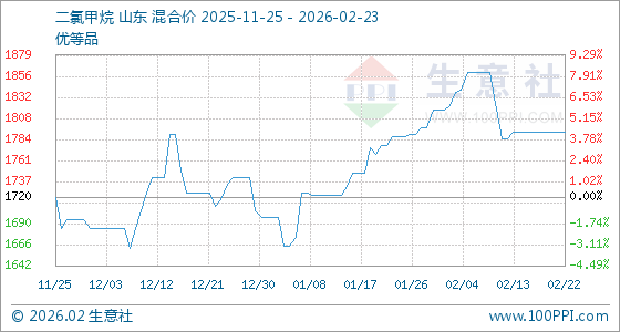 2月23日,生意社二氯甲烷基准价为1792.50元/吨,与本月初(1817.50元/吨)相比,下降了1.38%。
