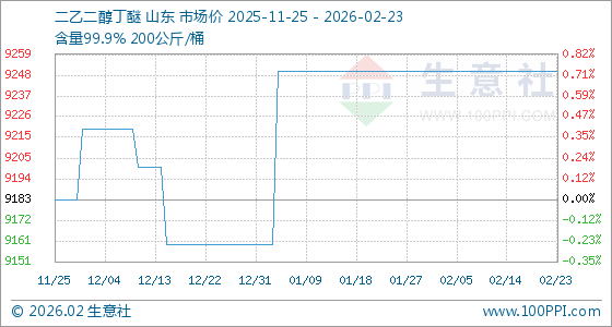 2月23日,生意社二乙二醇丁醚基准价为9250.00元/吨,与本月初持平。