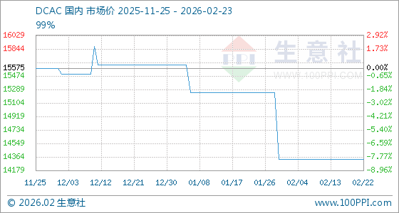 2月23日,生意社DCAC基准价为14333.33元/吨,与本月初持平。