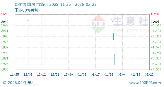 2月23日,生意社硫化钠基准价为1900.00吨,与本月初持平。