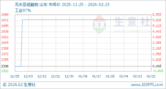 2月23日,生意社无水亚硫酸钠基准价为2475.00元/吨,与本月初持平。