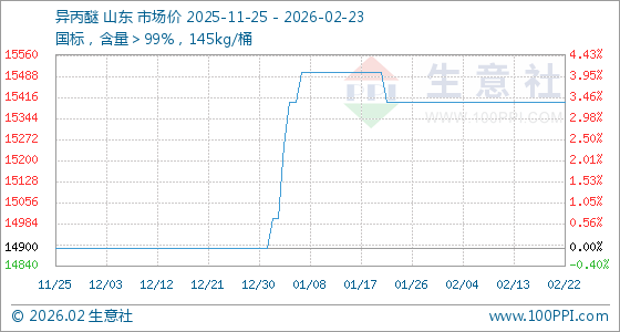 2月23日,生意社异丙醚基准价为15400.00元/吨,与本月初持平。