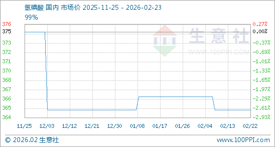 2月23日,生意社氢碘酸基准价为365.00元/吨,与本月初(366.67元/吨)相比,下降了0.46%。
