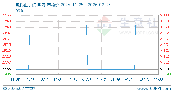 2月23日,生意社氯代正丁烷基准价为12550.00元/吨,与本月初(12500.00元/吨)相比,上涨了0.40%。