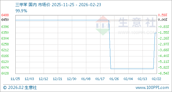 2月23日,生意社三甲苯基准价为6350.00元/吨,与本月初(6066.67元/吨)相比,上涨了4.67%。