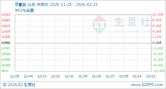 2月23日,生意社双氰胺基准价为10966.67元/吨,与本月初持平。