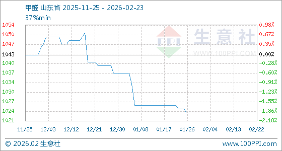 2月23日,生意社甲醛基准价为1023.75元/吨,与本月初持平。