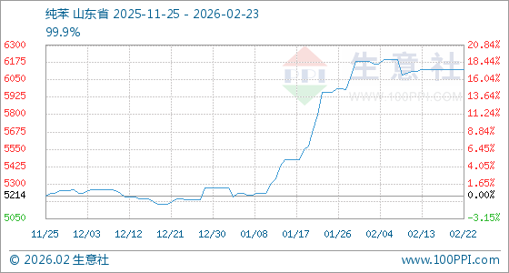 2月23日,生意社纯苯基准价为6123.33元/吨,与本月初(6186.67元/吨)相比,下降了1.02%。