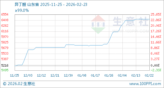 2月23日,生意社异丁醛基准价为6433.33元/吨,与本月初(6106.67元/吨)相比,上涨了5.35%。