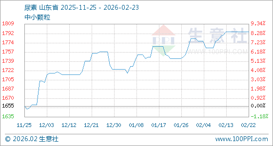 2月23日,生意社尿素基准价为1795.00元/吨,与本月初(1782.50元/吨)相比,上涨了0.70%。
