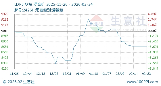 2月24日,生意社LDPE基准价为8700.00元/吨,与本月初(9066.67元/吨)相比,下降了4.04%。