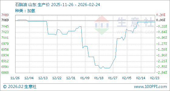 2月24日,生意社石脑油基准价为7063.33元/吨,与本月初(7000.00元/吨)相比,上涨了0.90%。