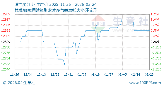 2月24日,生意社活性炭基准价为12866.67元/吨,与本月初(12883.33元/吨)相比,下降了0.13%。