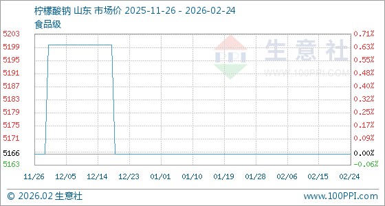 2月24日,生意社柠檬酸钠基准价为5166.67元/吨,与本月初持平。