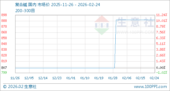 2月24日,生意社复合碱基准价为890.00元/吨,与本月初持平。