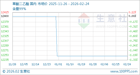 2月24日,生意社草酸二乙酯基准价为12250.00元/吨,与本月初持平。