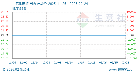 2月24日,生意社二氧化硫脲基准价为21.50元/吨,与本月初持平。