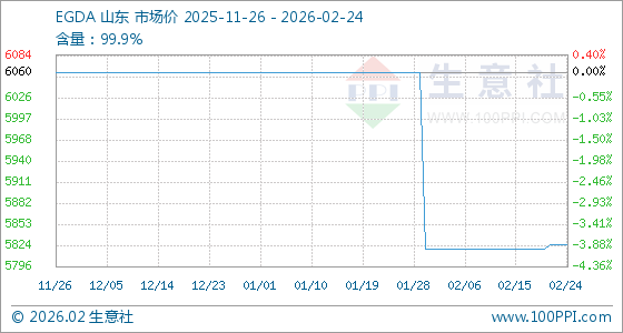 2月24日,生意社EGDA基准价为5825.00元/吨,与本月初(5820.00元/吨)相比,上涨了0.09%。