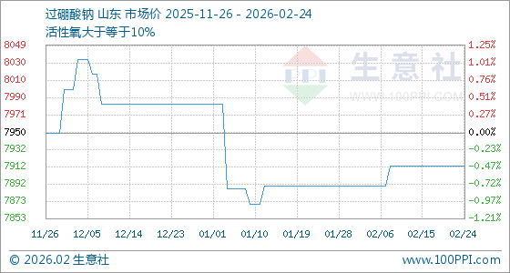 2月24日,生意社过硼酸钠基准价为7912.50元/吨,与本月初(7890.00元/吨)相比,上涨了0.29%。