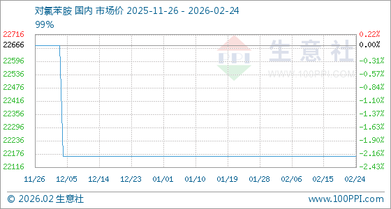 2月24日,生意社对氯苯胺基准价为22166.67元/吨,与本月初持平。