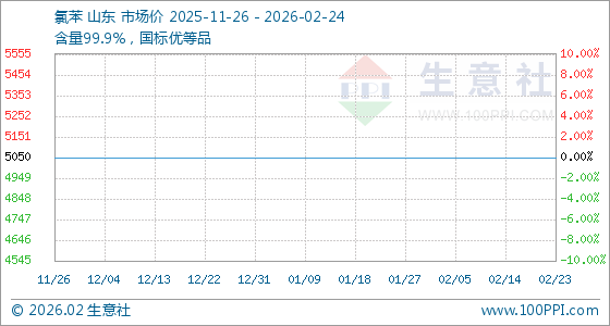2月24日,生意社氯苯基准价为5050.00元/吨,与本月初持平。