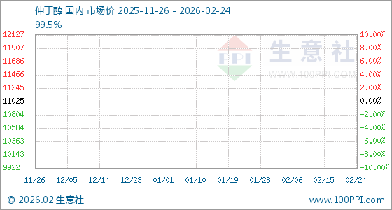 2月24日,生意社仲丁醇基准价为11025.00元/吨,与本月初持平。