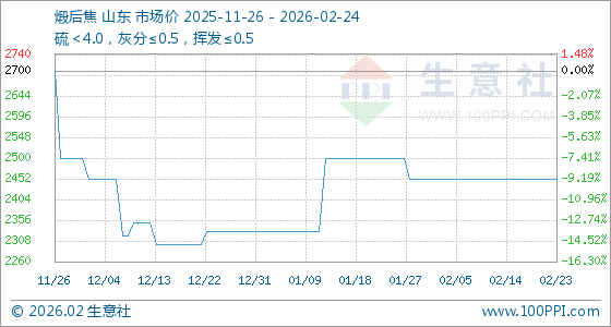 2月24日,生意社煅后焦基准价为2450.00元/吨,与本月初持平。