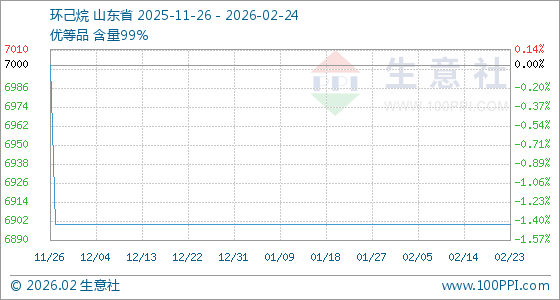 2月24日,生意社环己烷基准价为6900.00元/吨,与本月初持平。