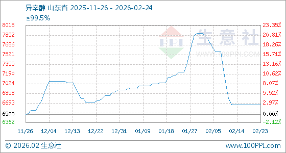 2月24日,生意社异辛醇基准价为6666.67元/吨,与本月初(7880.00元/吨)相比,下降了15.4%。