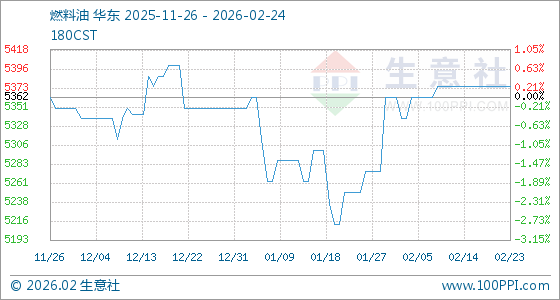 2月24日,生意社燃料油基准价为5375.00元/吨,与本月初(5362.50元/吨)相比,上涨了0.23%。