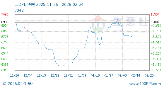 2月24日,生意社LLDPE基准价为6775.00元/吨,与本月初(6966.67元/吨)相比,下降了2.75%。