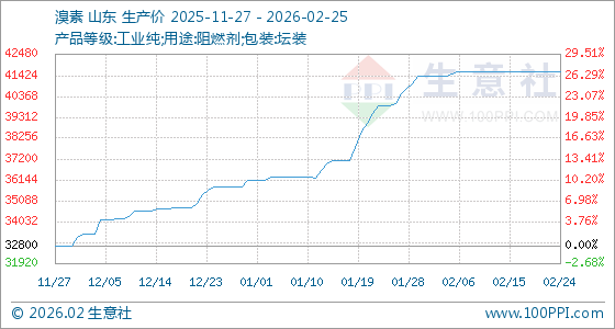 2月25日,生意社溴素基准价为41600.00元/吨,与本月初(41400.00元/吨)相比,上涨了0.48%。