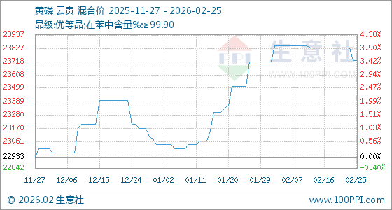 2月25日,生意社黄磷基准价为23729.33元/吨,与本月初(23712.67元/吨)相比,上涨了0.07%。